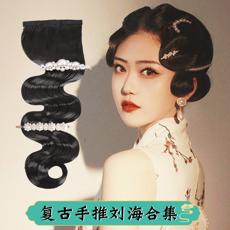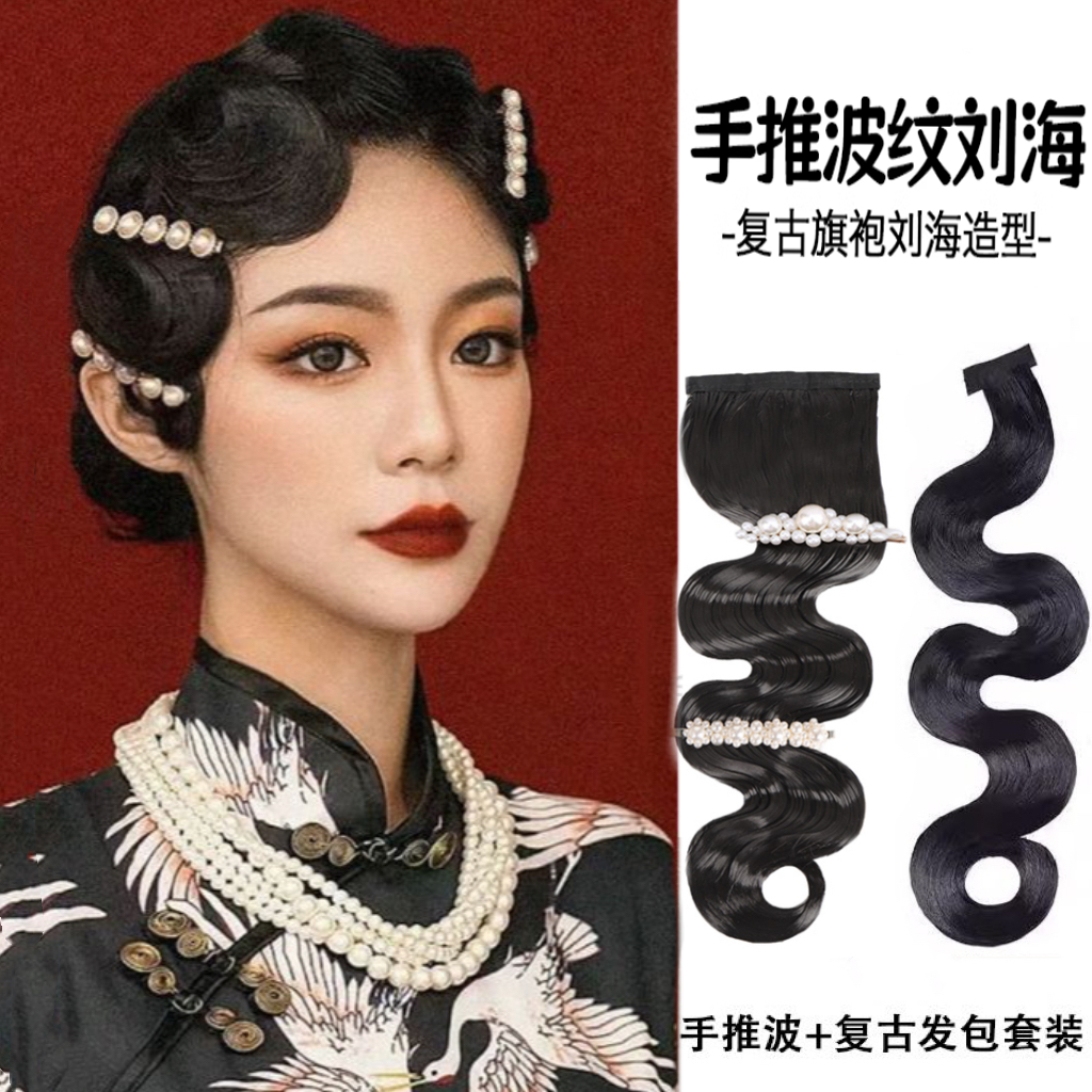 民国风波浪头饰古风造型假发片复古旗袍发型手推波纹假刘海夜上海