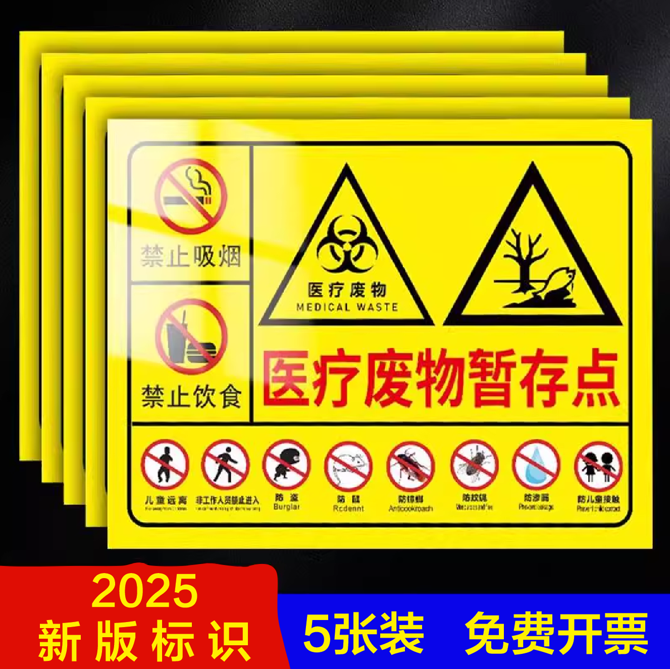 新版医疗废物标贴新国标2025标准医废标签废水感染性医疗垃圾废弃物标识贴分类暂存间点处警示标识牌贴纸全套