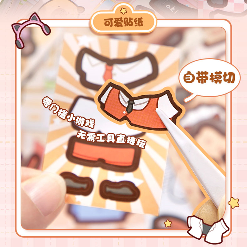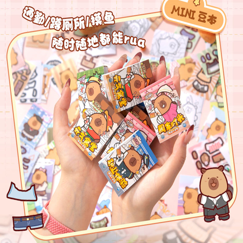 2合1(可涂色可换装)益智50张不重复卡皮巴拉贴纸玩趣豆豆本手账DIY涂色本可爱少女打发时间摸鱼神器贴纸本