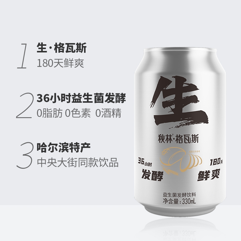 秋林格瓦斯饮料特浓面包发酵俄罗斯汽水哈尔滨特产饮品罐装啤酒
