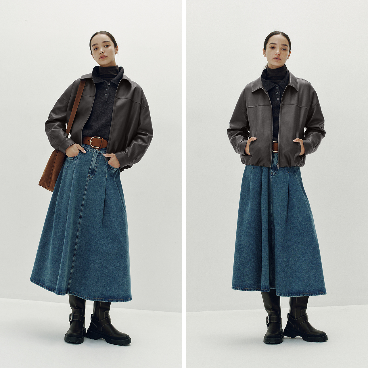 [商场同款]森马外套女PU仿皮设计感秋季2025新款翻领宽松花苞夹克