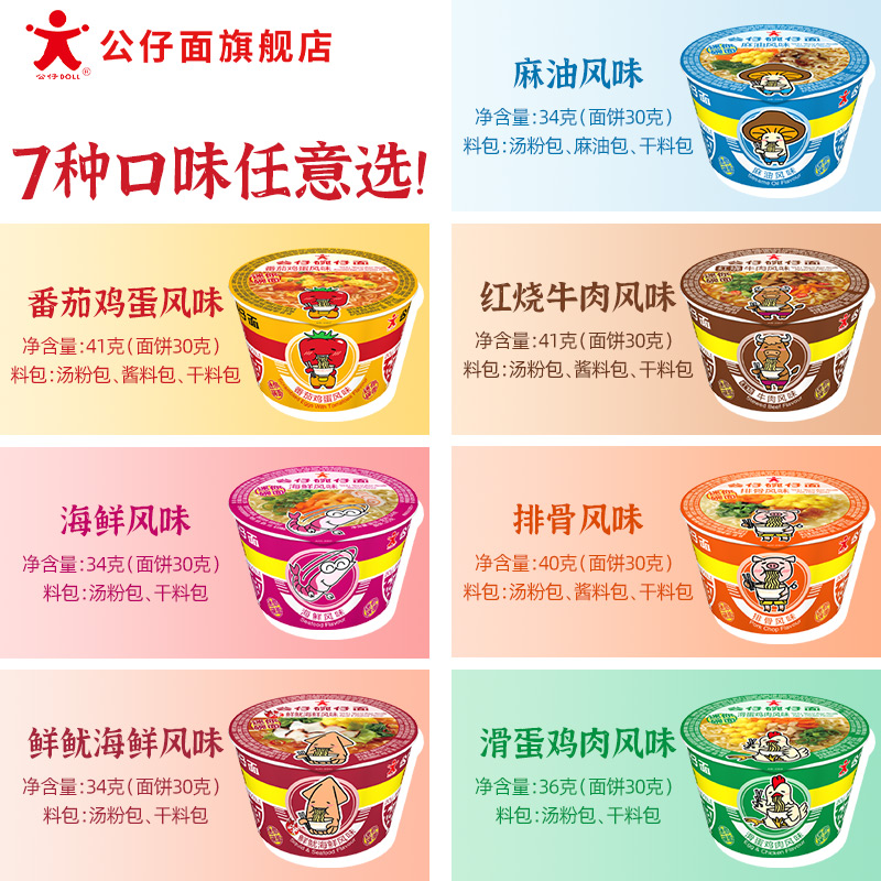 香港公仔面迷你碗仔面整箱方便面海鲜味速食泡面杯面桶装湾仔面