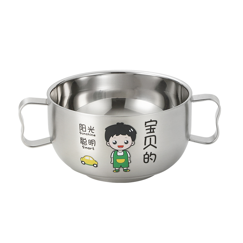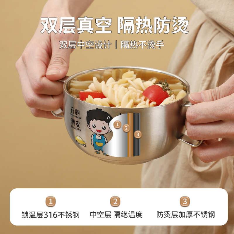 316L不锈钢儿童双层防烫碗耐摔BB辅食餐具双柄小孩吃饭碗宝宝学食