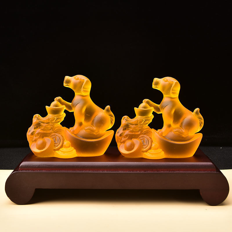 贵犬通琉璃摆件2024年生肖属虎吉祥物狗摆设礼物客厅办公桌饰品