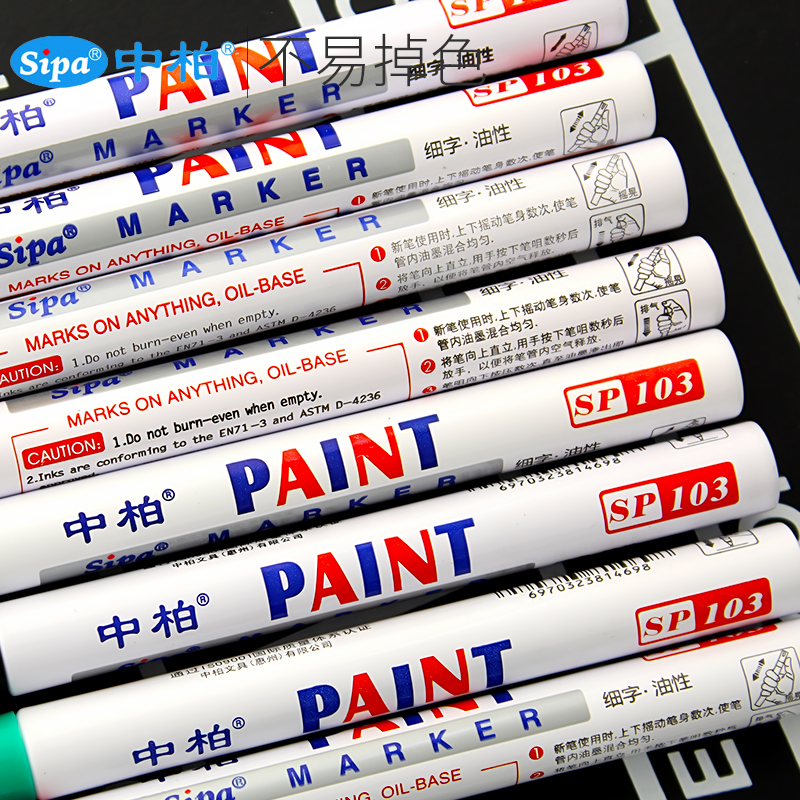 中柏油漆笔高光绘画笔黄色油性笔签名笔DIY相册涂鸦记号笔轮胎笔细头墓碑描字笔画衣服鞋子