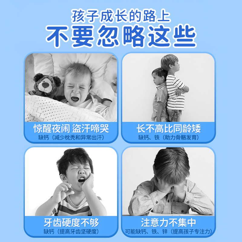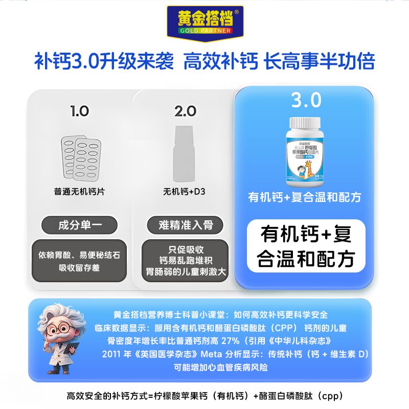 黄金搭档儿童青少年钙片碳酸钙成长期柠檬酸钙补钙4-17岁助力长高