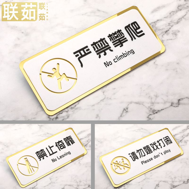 亚克力严禁攀爬标识牌水深请勿嬉水提示牌禁止踩踏倚靠标示牌请勿坐卧嬉戏打闹小心有电安全警示牌告示牌定制