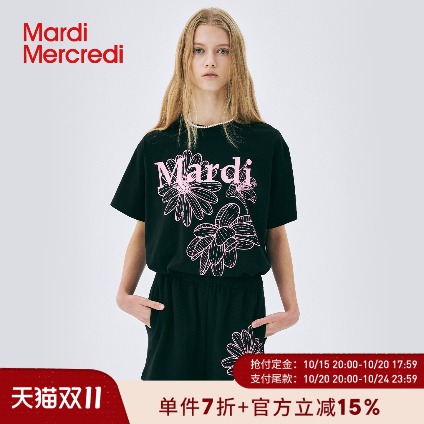 MardiMercredi小雏菊百合三花短袖t恤宽松上衣女夏季新款多巴胺