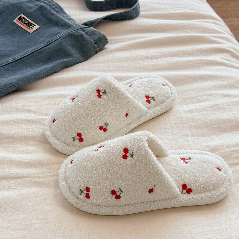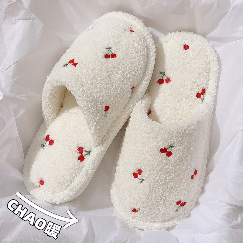 FZT可爱樱桃棉拖鞋女款秋冬季2025新款卧室居家防滑毛绒地板拖鞋