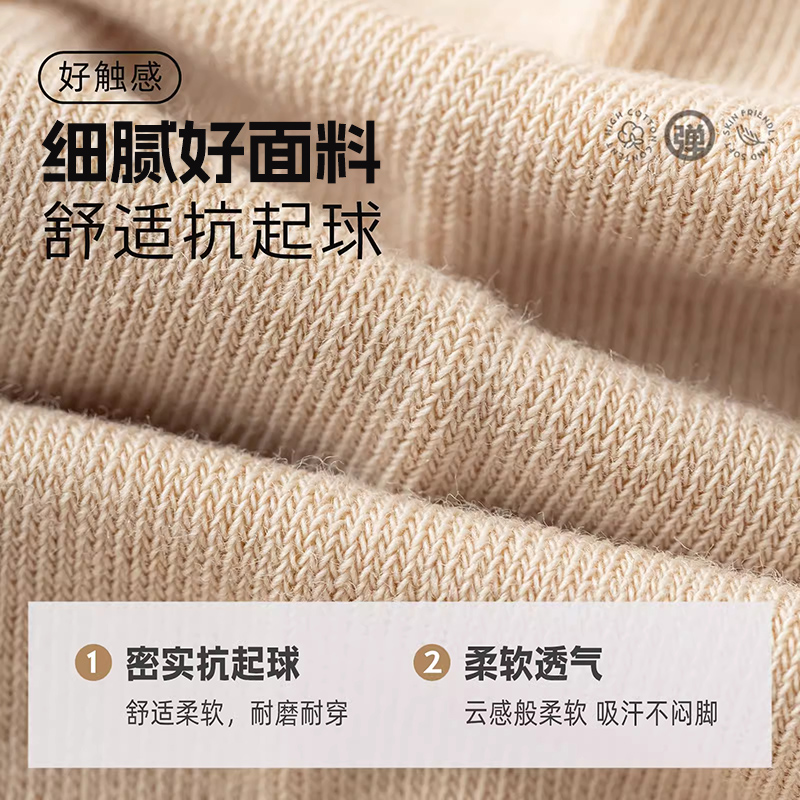 全棉时代男女袜子情侣款全棉5A抗菌透气船袜中筒袜舒适运动