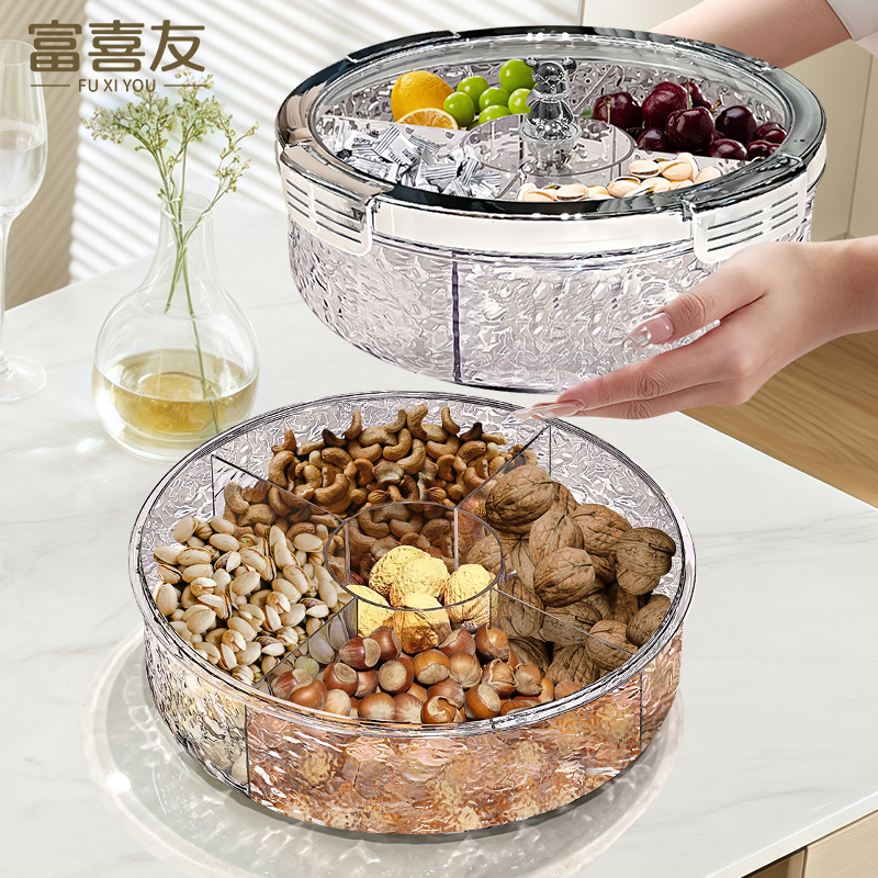 高颜值轻奢密封坚果零食糖果盘新款过年干果盘家用客厅茶几水果盘
