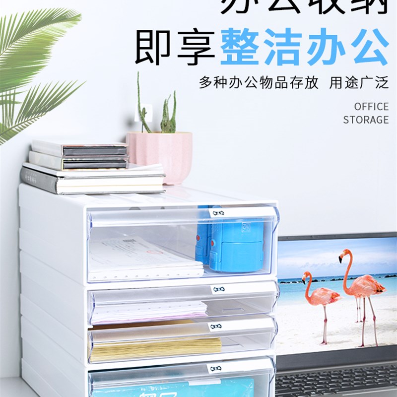 极速办公资料A4文件柜单据w抽屉式桌面防尘收纳盒票据文件架分类