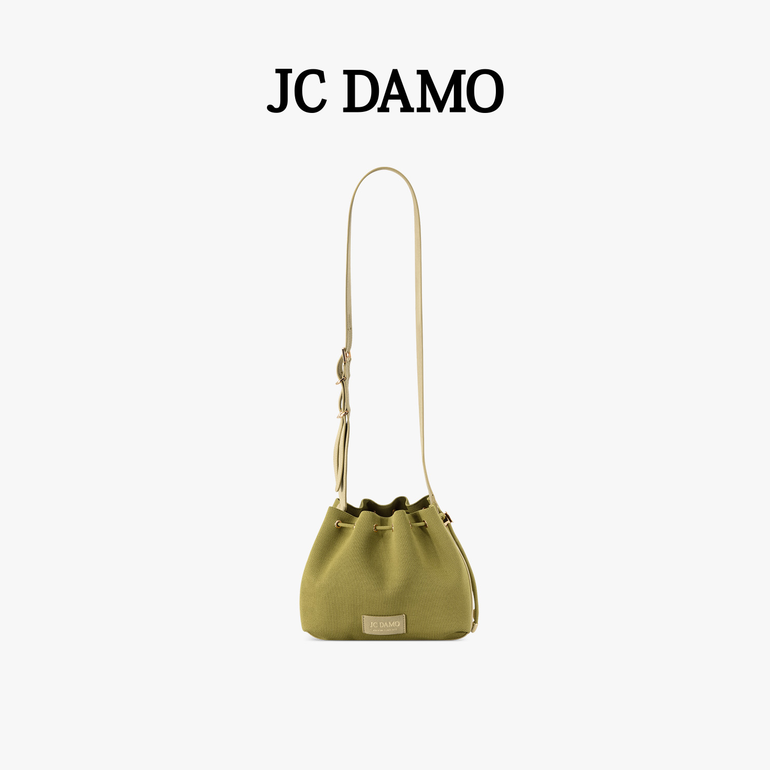 JC DAMO 2025秋新款姜黄色抽绳水桶包女简约高级感斜挎包大容量