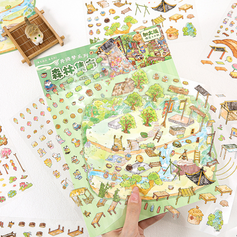 市井绮梦大号立体造景贴纸古风微缩场景手工diy解压堆叠贴纸