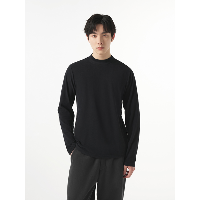 热风2025年冬季新款男士基本款半高领T恤简约宽松纯色上衣长袖