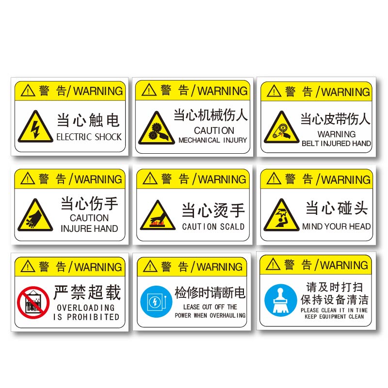机械设备安全警示标签贴当心机械伤人有电危险标识当心触电当心伤手夹手高温烫伤加油润滑油机器标签标识定制