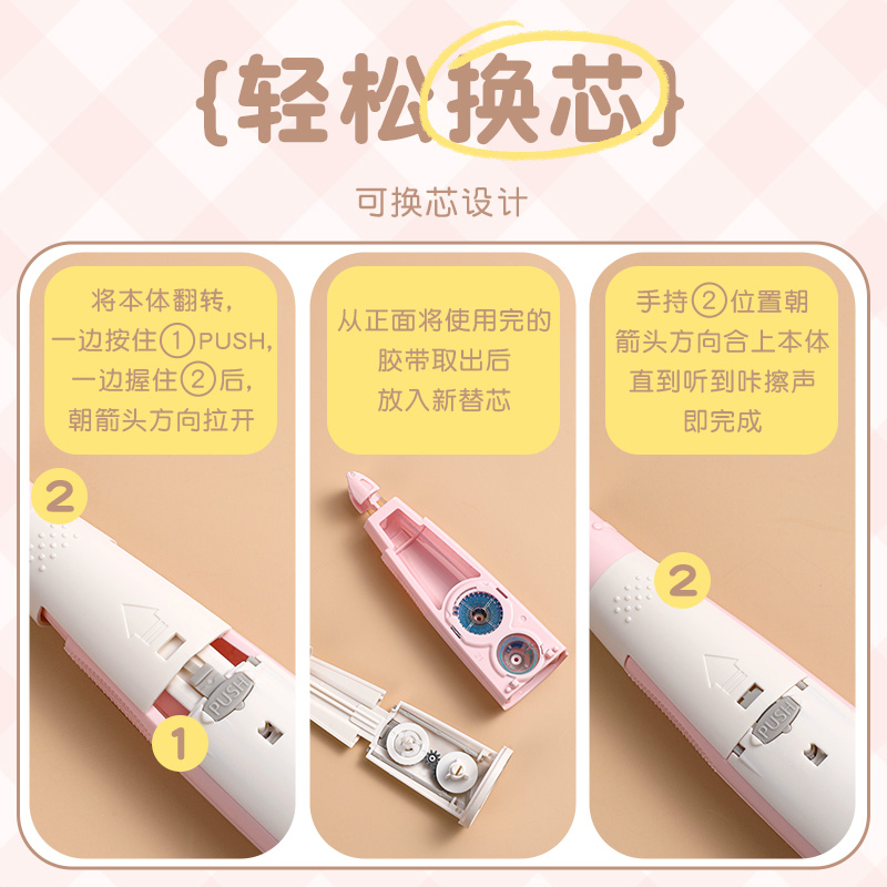三年二班可按动点点胶高粘度无痕不留胶小学生专用粘贴点状双面胶透明胶带幼儿园手工点胶笔贴纸手账文具替芯