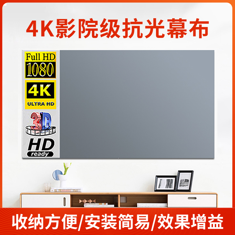 投影布幕抗光家用幕布折叠简易100英寸高清免打孔办公商务电影幕