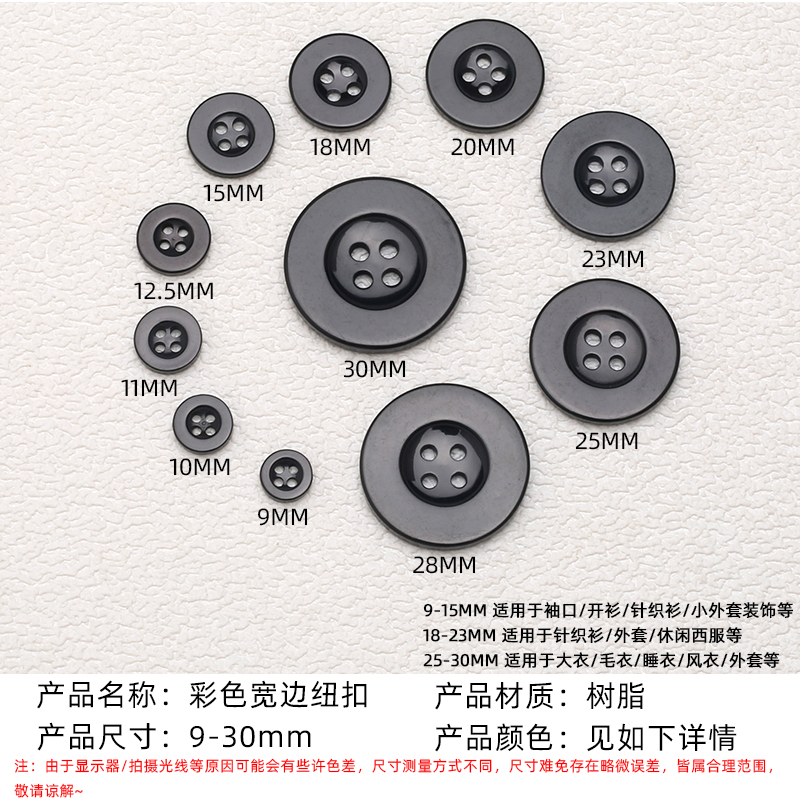 彩色树脂纽扣diy手工圆形衬衫扣大衣西装西裤扣子手缝塑料纽扣