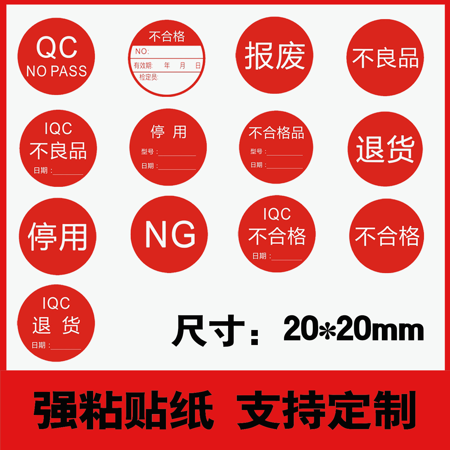 陌释标签合格证QCPASS特采ROHS不良品NG尾数OK停工退货特采待定待检正品让步接收赠品贴纸定制彩色不干胶商标