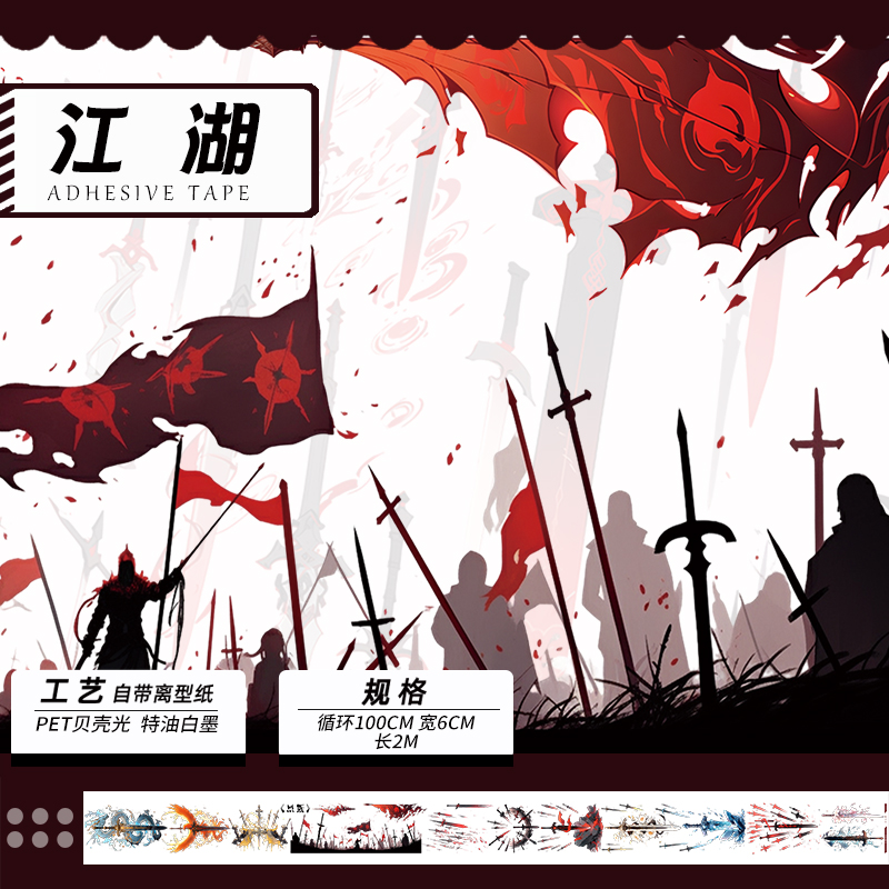 手帐pet胶带暗黑风水面古风和纸流麻装饰手账素材拼diy贴纸2米卷