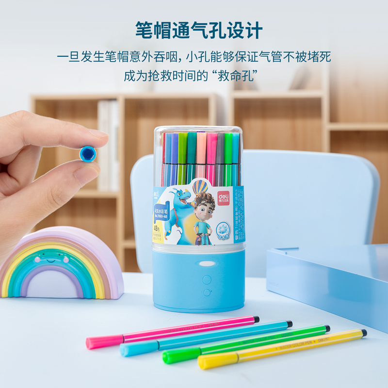 得力儿童可水洗水彩笔24色幼儿园小学生绘画画笔48色套装涂鸦笔