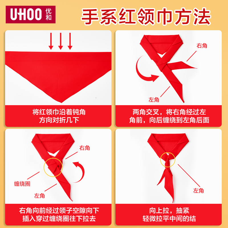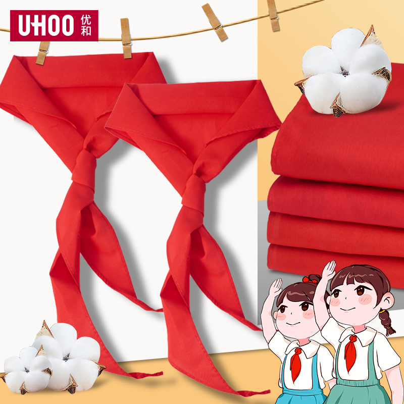 UHOO优和红领巾小学生少先队员国标1.2米纯棉大红领巾批发学生用品通用大号小号红邻巾儿童夏季一年级红领巾