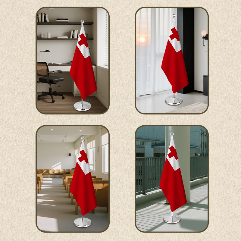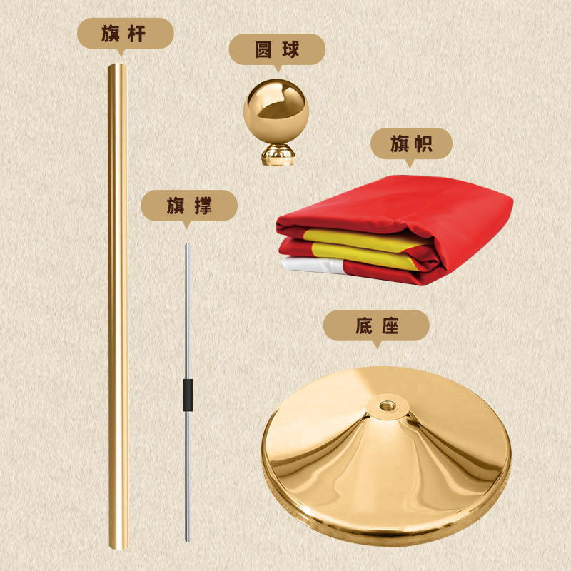 汤加国旗2米2.6米3米钛金可伸缩办公室会议室红旗摆件室内落地旗杆旗座加厚不锈钢旗帜装饰立式厅旗旗架
