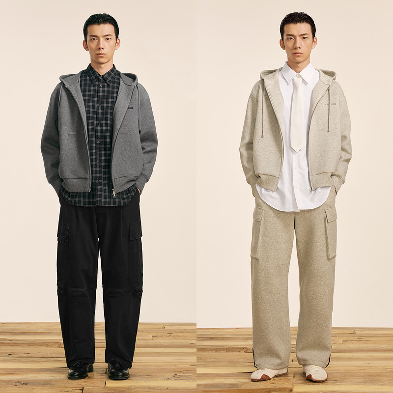 速写男装秋冬新款宽松卫衣连帽开襟拉链设计休闲时尚潮流运动外套