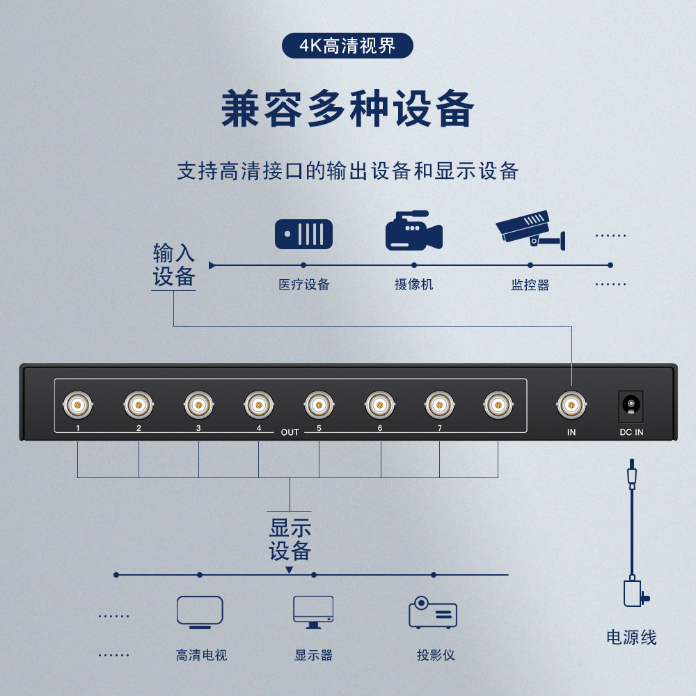 优霆SDI分配器一分八 3G sdi splitter 1x8 1080P60hz RG6线100米