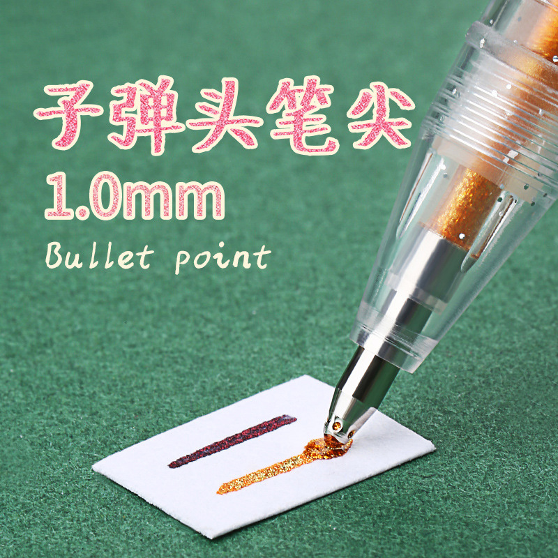 彩色闪光笔啫喱发光亮晶晶流沙银光变色做手账的手帐专用儿童莹光做笔记珠光标记闪亮金属轮廓闪粉水彩笔荧光