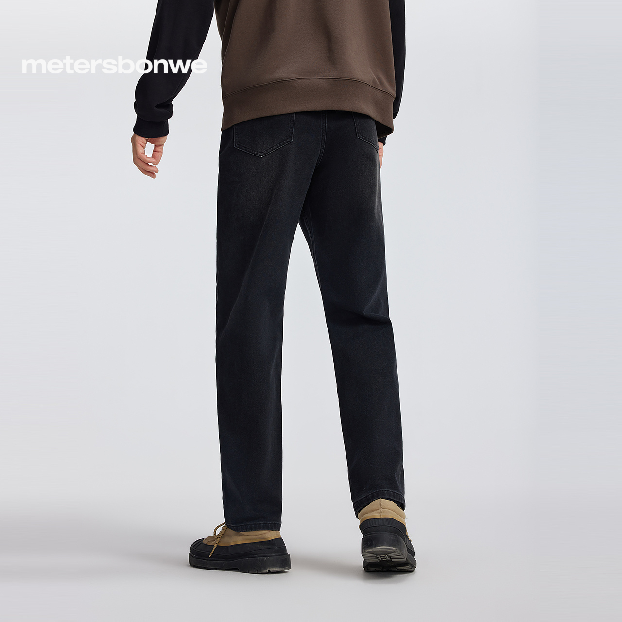 美特斯邦威牛仔裤男士春夏新款软壳保暖复古舒适底抓毛小脚裤下装