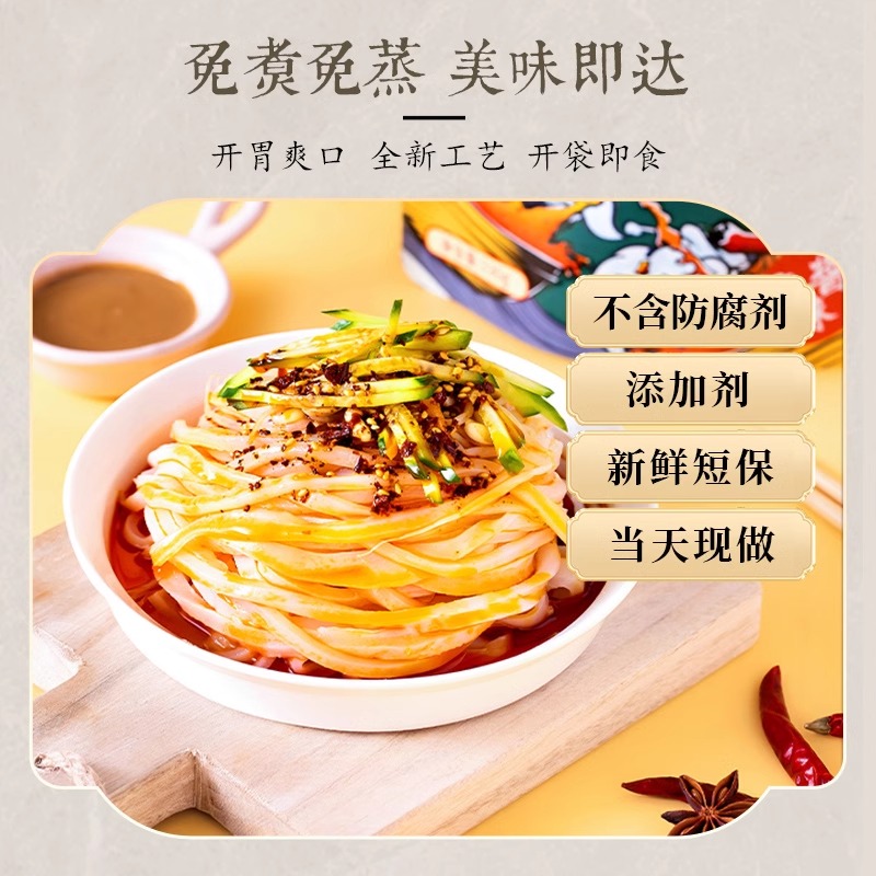 正宗陕西凉皮开袋即食宝鸡擀面皮汉中米皮麻酱拌面条免煮速食小吃
