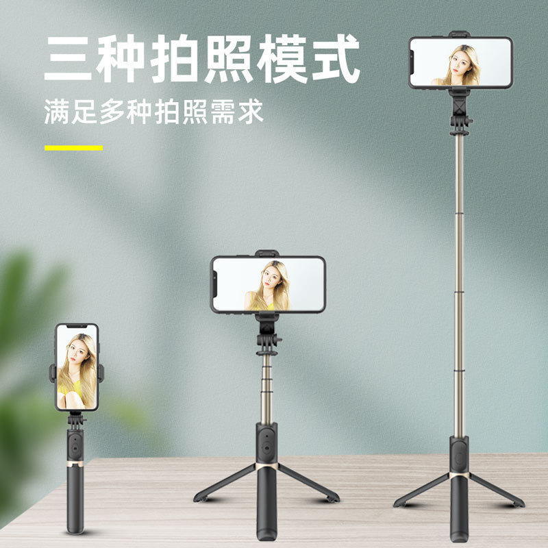 Q03铝合金伸缩手持蓝牙自拍杆三脚架桌面落地手机横竖拍支架