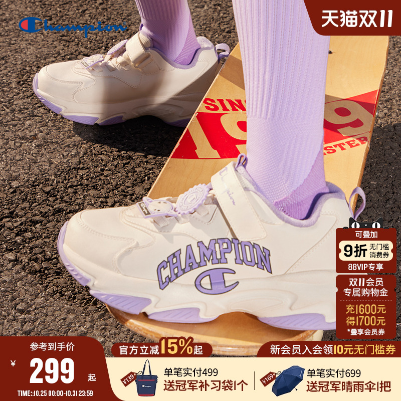 Champion冠军儿童鞋25新款女大小童魔术贴运动户外老爹鞋小白鞋潮