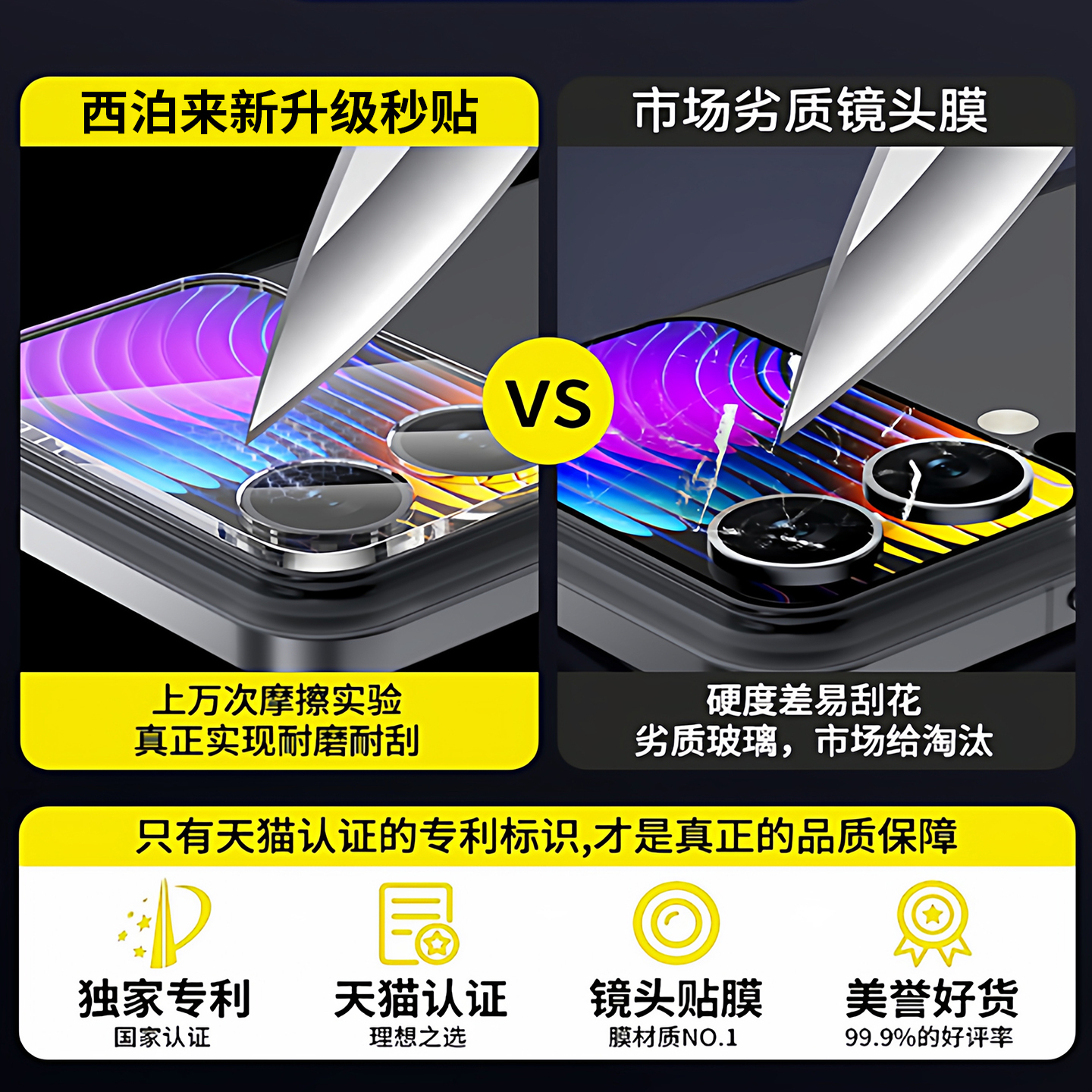 倍思适用iPhone17/16Pro镜头膜苹果15ProMax手机镜头保护膜15后摄像头贴4新款康宁13相机全包12高清分体ip壳