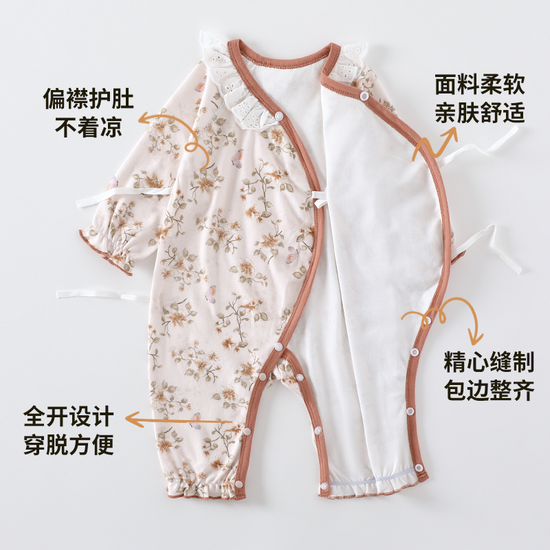 babycare秋新款山茶花连体衣宝宝包屁衣新生儿爬服外出服婴儿衣服