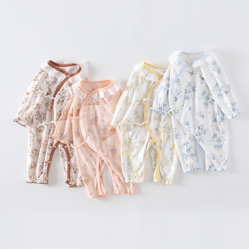 欧孕婴儿连体衣夏季薄款新生男女宝宝纯棉哈衣睡衣空调服长袖爬服