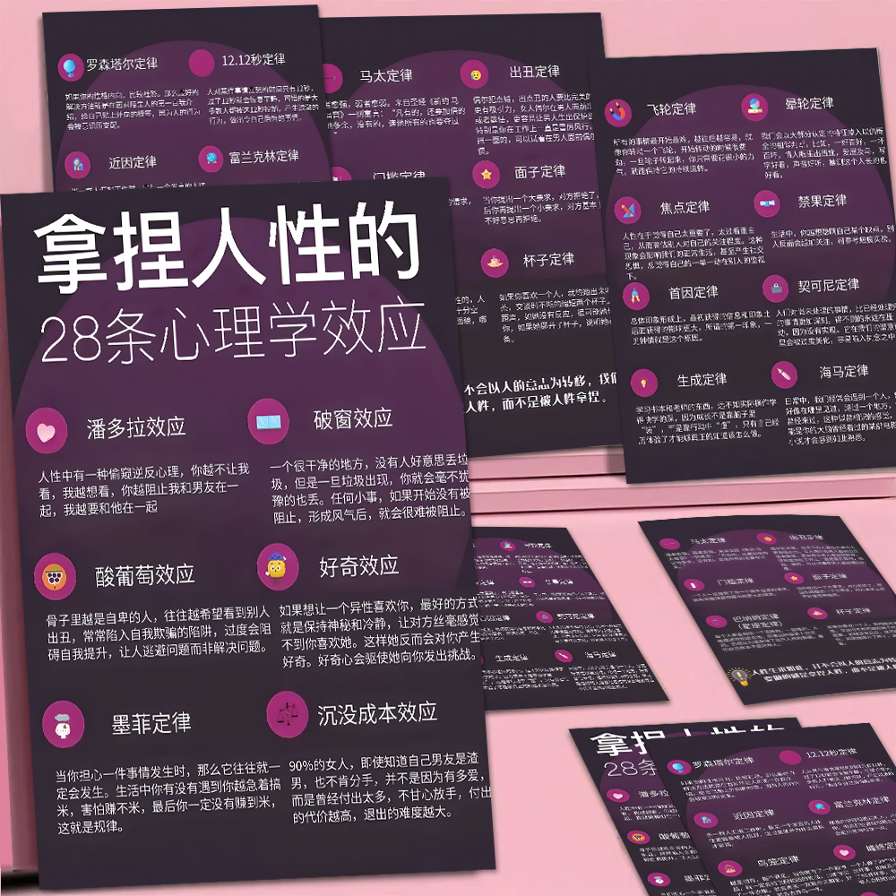 12张拿捏人性的28条心理学效应认知觉醒自我提升心理学知识科普卡