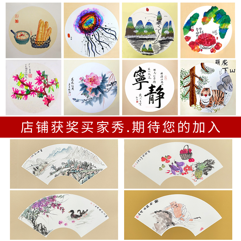 宣纸卡纸国画专用生宣熟宣半生半熟圆形扇面宣卡纸镜面生宣纸镜片纸儿童书法作品宣卡半生熟方形扇形工笔画纸