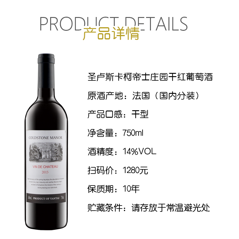 法国进口红酒14度赤霞珠干红葡萄酒750ml过节聚会送礼婚宴喜酒水
