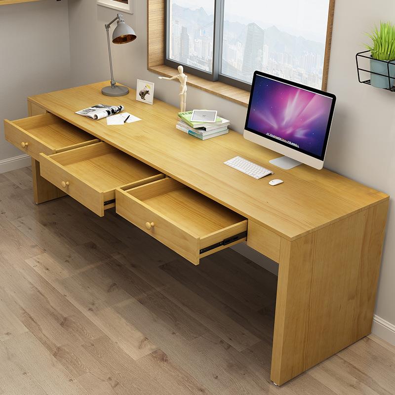 木质靠墙双人书桌书房客厅带抽屉电脑桌现代简约学生学习长条桌