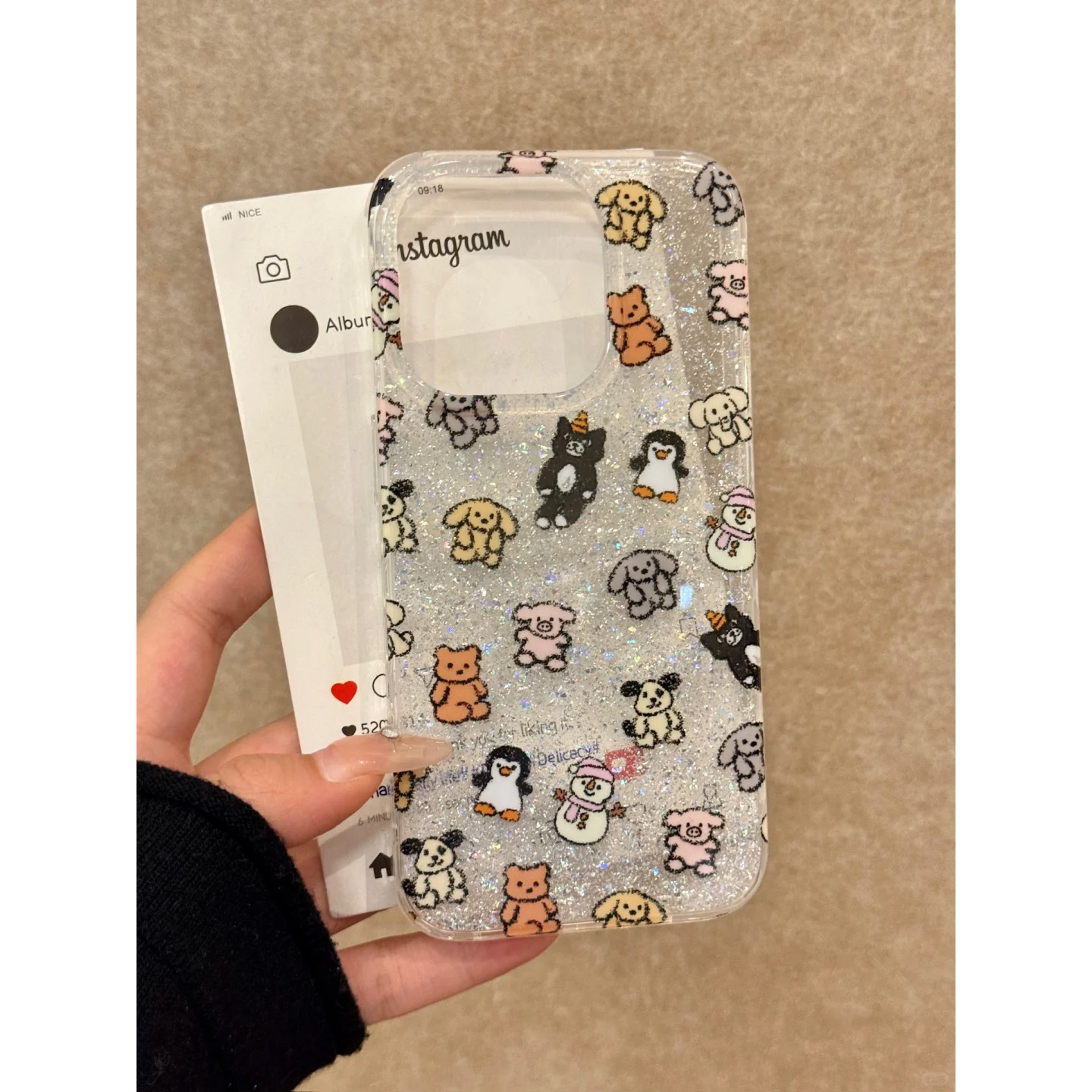 超仙闪粉可爱小动物适用苹果16promax手机壳iPhone15新款16保护套13小众女款14全包防摔15pro半透色细闪xs/xr