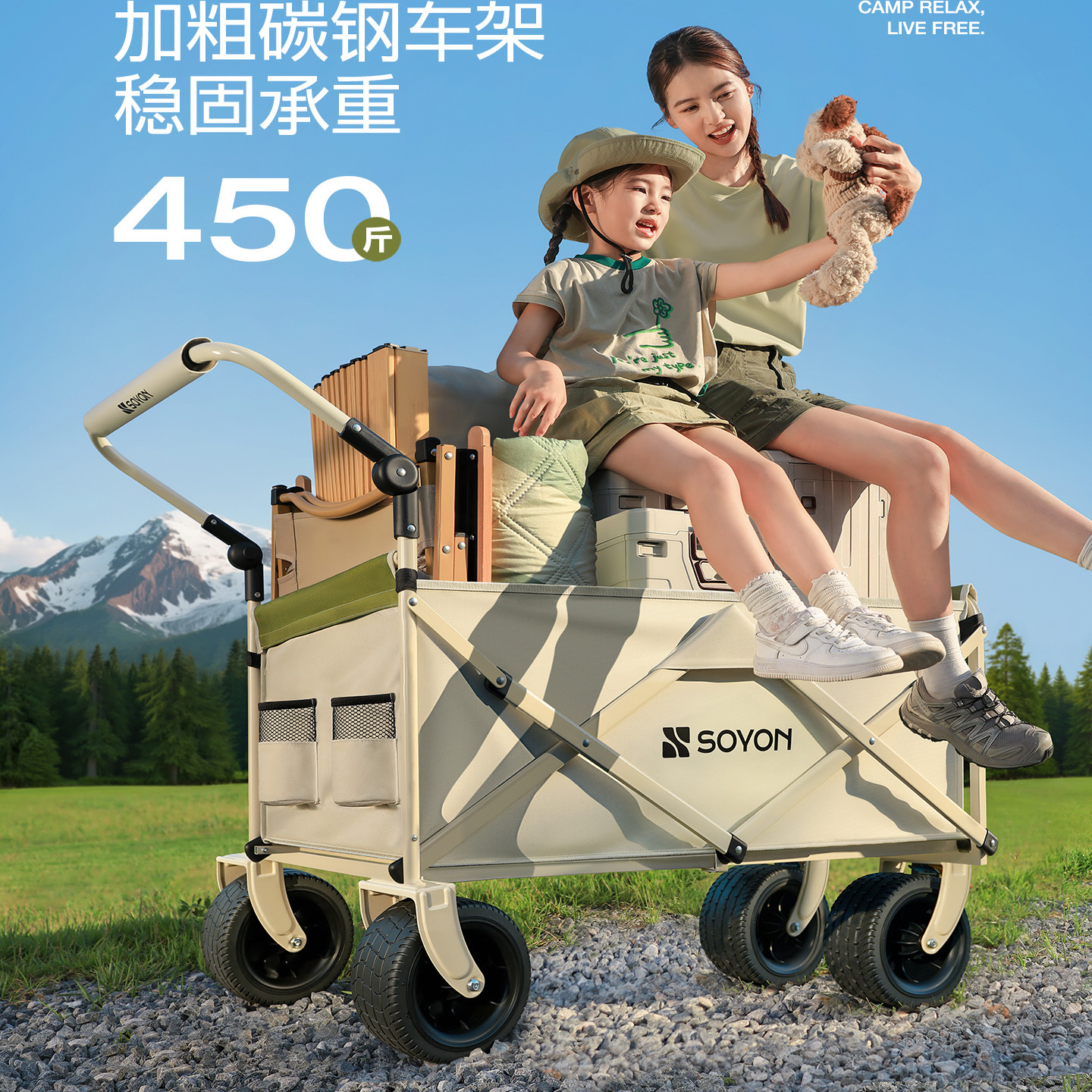 SOYON速营露营车儿童可躺手推户外折叠推车野营野餐摆摊露营推车