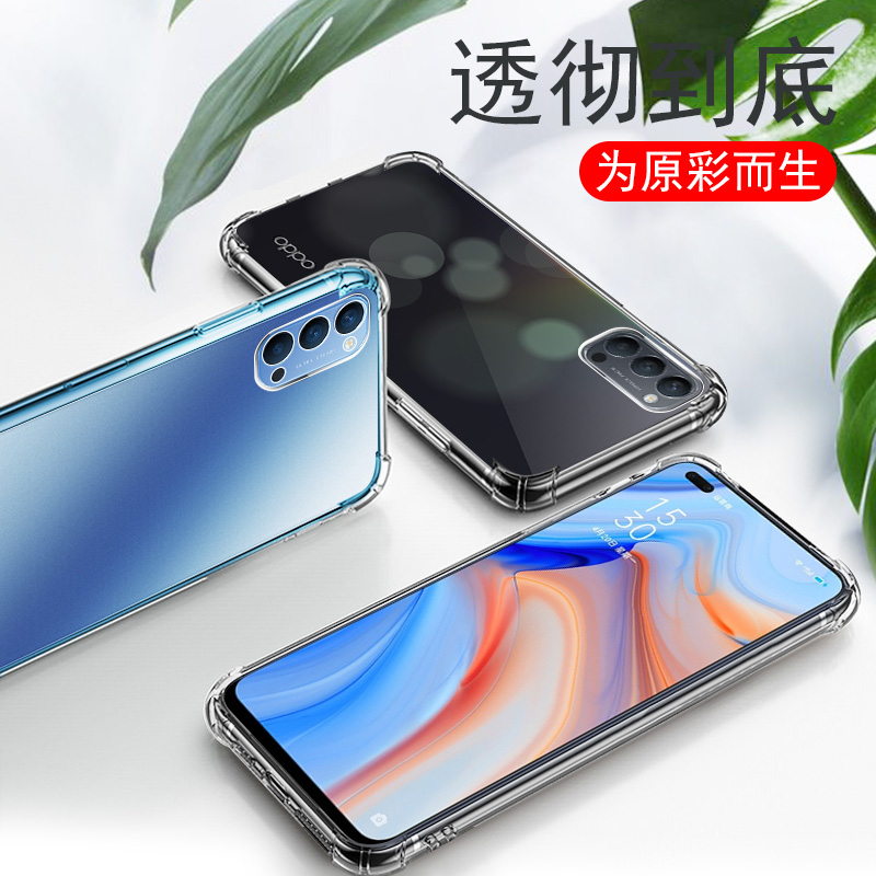 RENO4手机壳透明OPPORENO4PRO气囊防摔oppo新款5g版por全包防摔潮最新男生曲屏男镜头超薄个性硅胶手机套保护