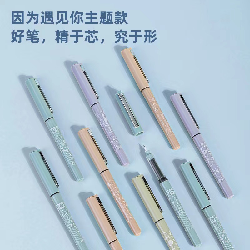 促销得力S1661因为遇见你直液式走珠笔学生中性笔签字笔0.5mm黑