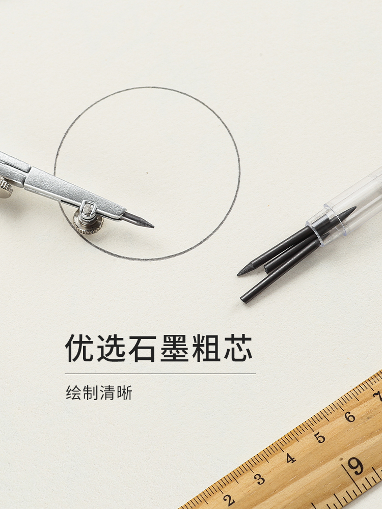 晨光本味2B金属圆规学生用量角画图制图工具学习考试用品ACSN1356