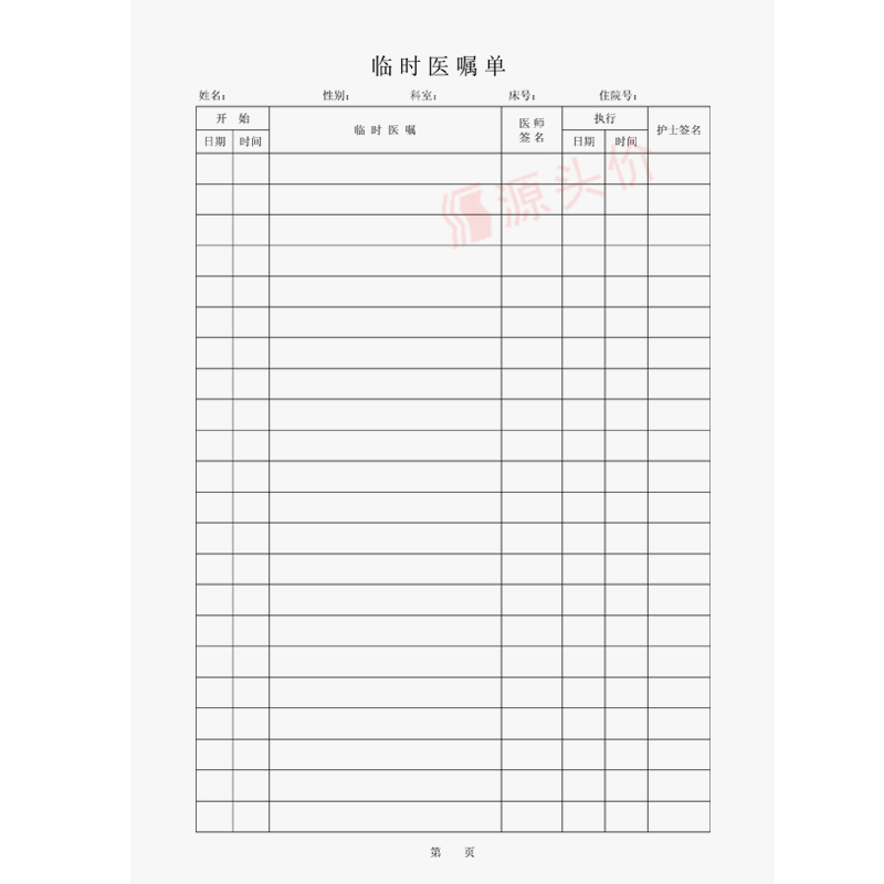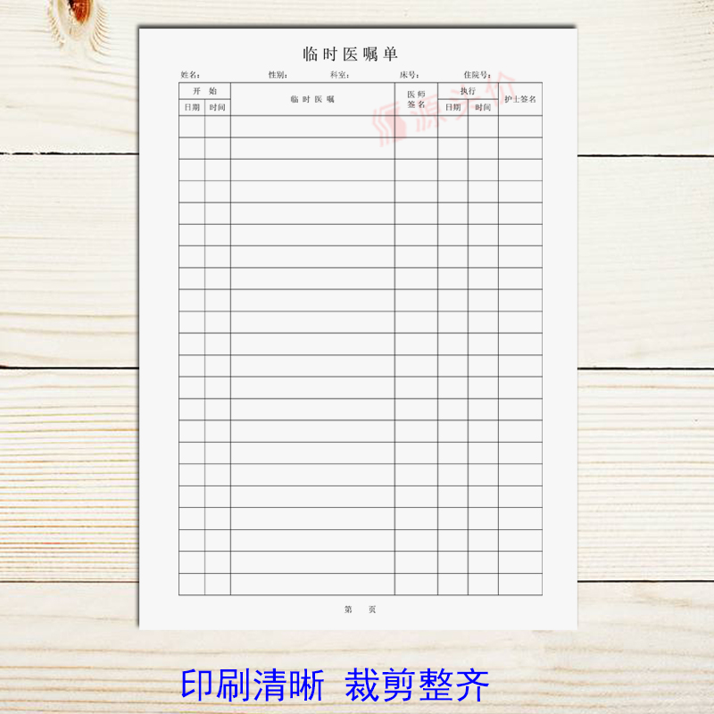临时医嘱单表住院病案长期医嘱单体温记录单临时记录表订做定制