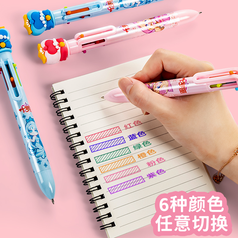叶罗丽多色笔圆珠笔学生用10色6色合一可爱女孩少女心一笔多种颜色按动式手账笔多色按压式10色做笔记彩色笔