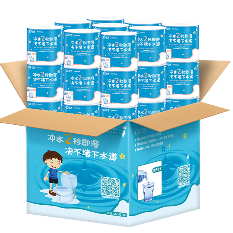 日诺水溶性卫生纸可溶水卷纸融水易溶有芯卷筒纸厕纸160克1箱27卷